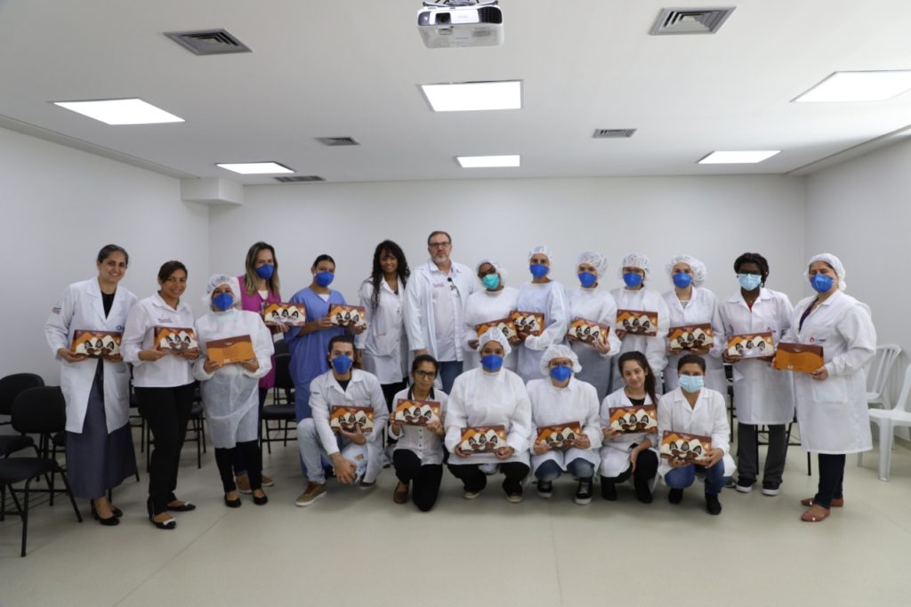Funcionários do Centro de Diagnósticos de Barueri recebem ovos de páscoa.